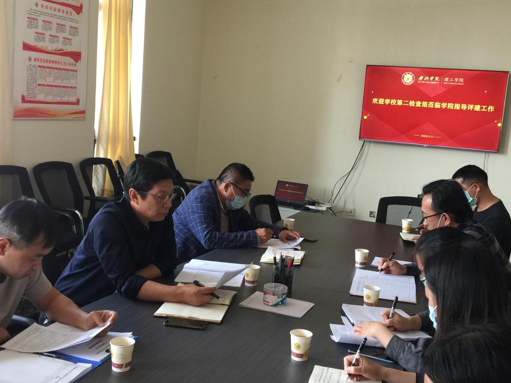 2020年3月11日下午4:15至5:30,学校党委副书记郑颖松同志率评建第二检查组莅临学院指导评建工作,评建办、教务处,学院科级以上领导干部参加了会议。