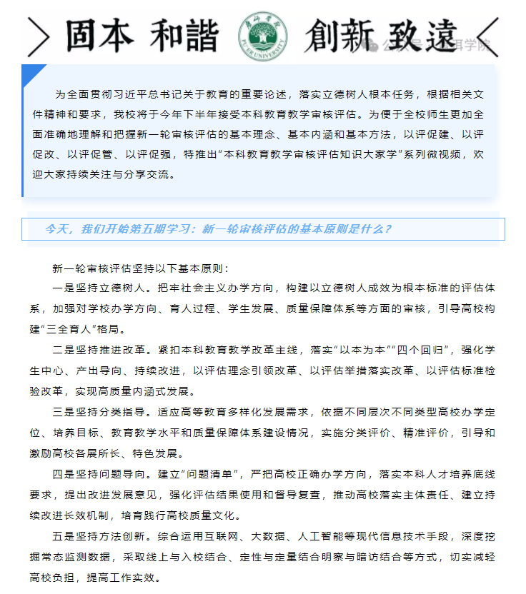 本科教育教学审核评估知识大家学(五)新一轮审核评估的基本原则是什么?